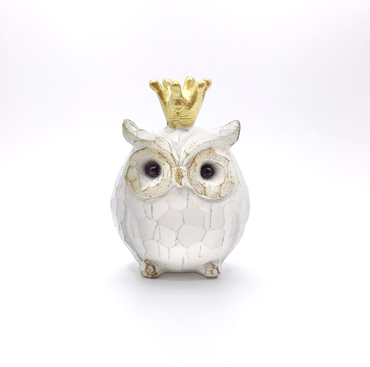アンティーク加工を施した、冠を被ったオウルの置物です。