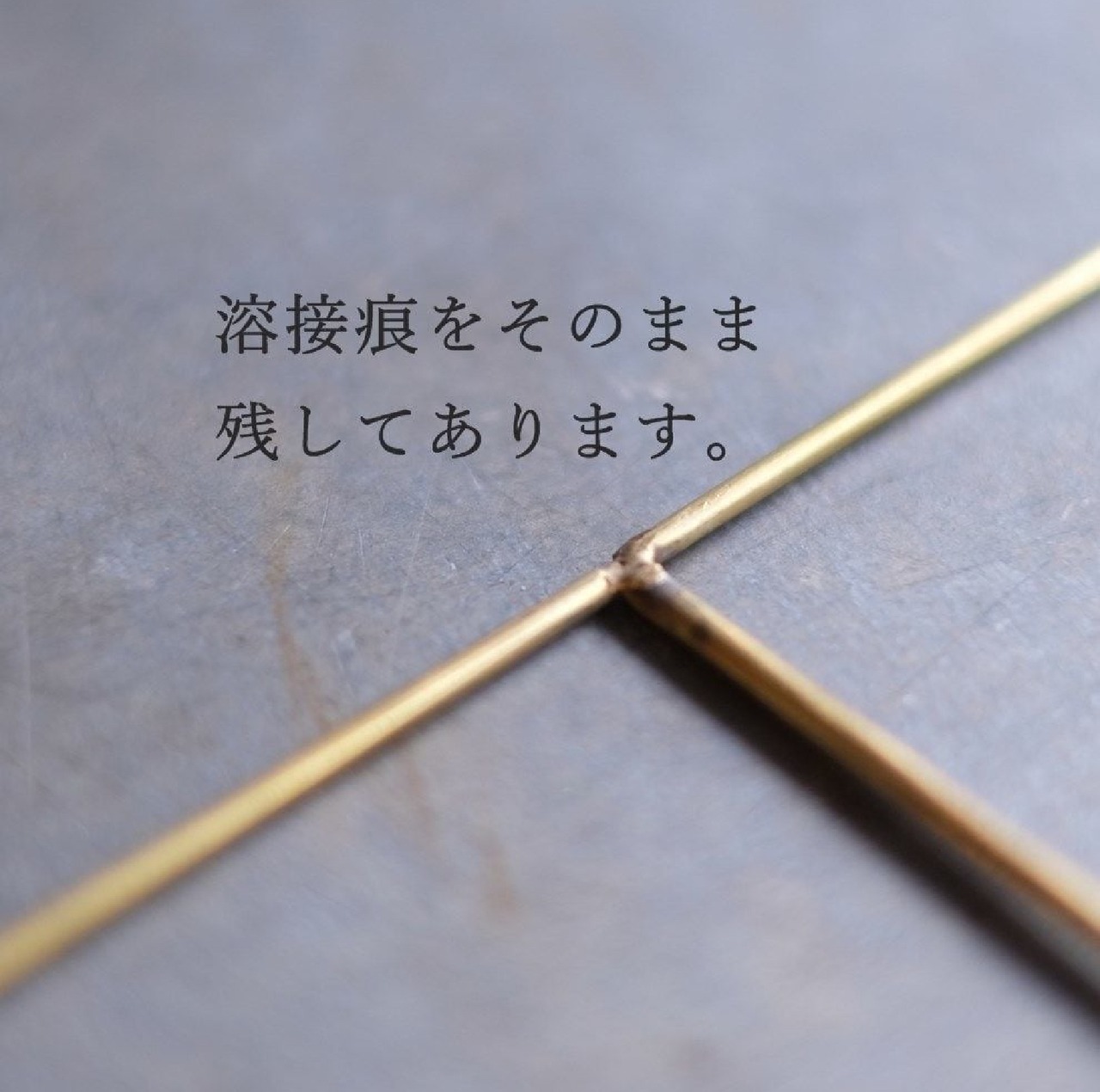 真鍮の素材感をいかすため、溶接痕や加工痕をそのまま残しています。また、真鍮の特性として経年変化によるくすみ等が出る場合がございます。商品の特性としてご理解をお願いいたします。