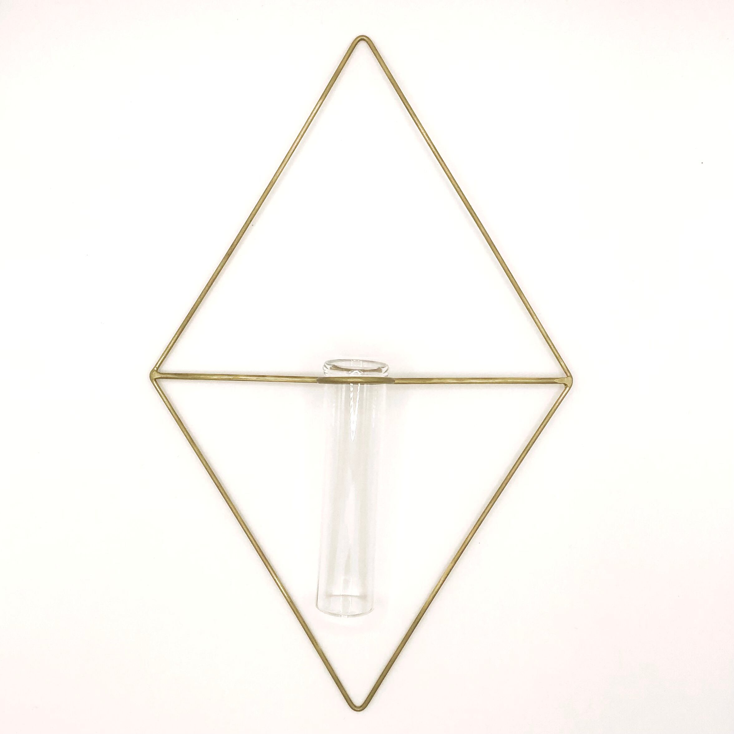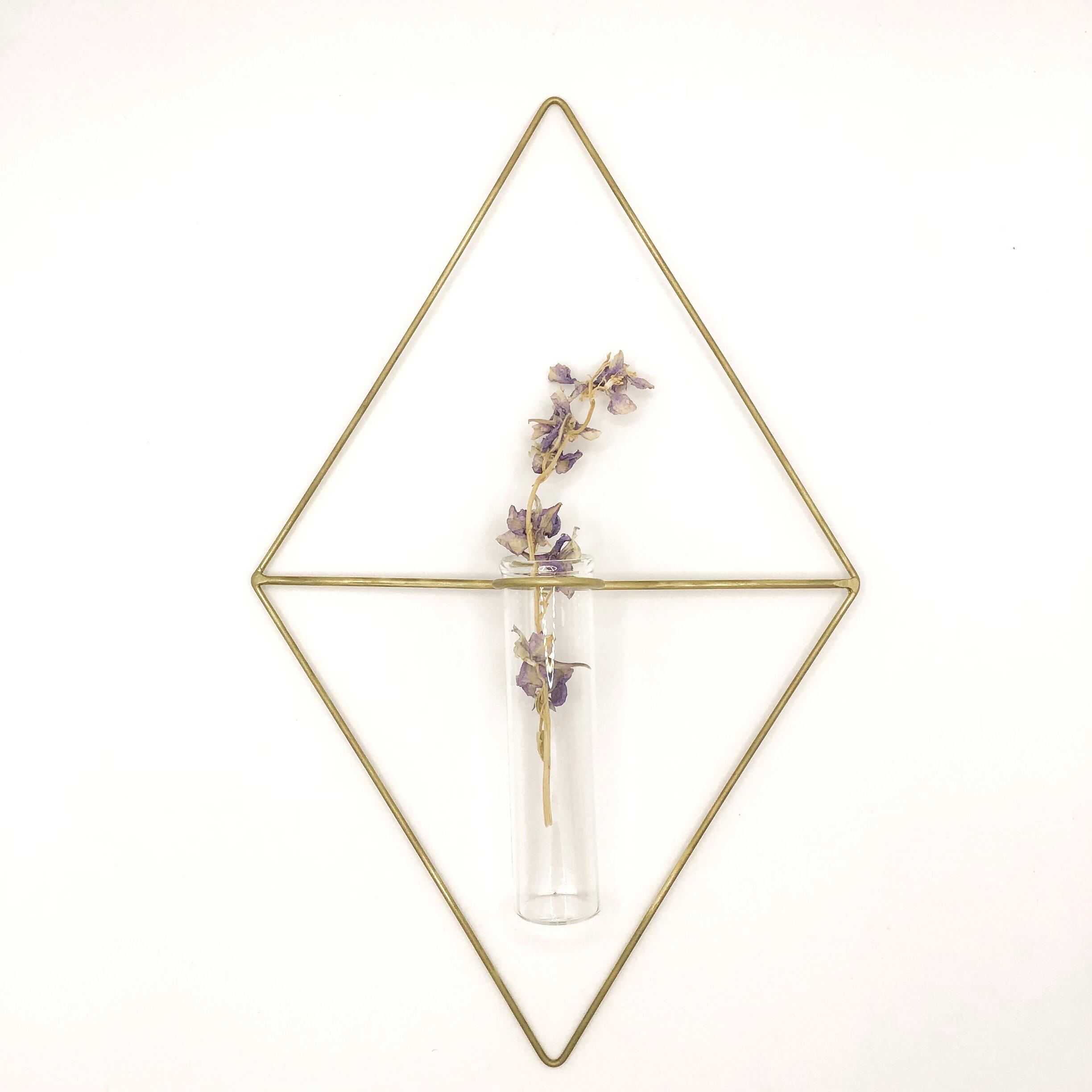 真鍮のフォルムが印象的な壁面を彩る一輪挿し