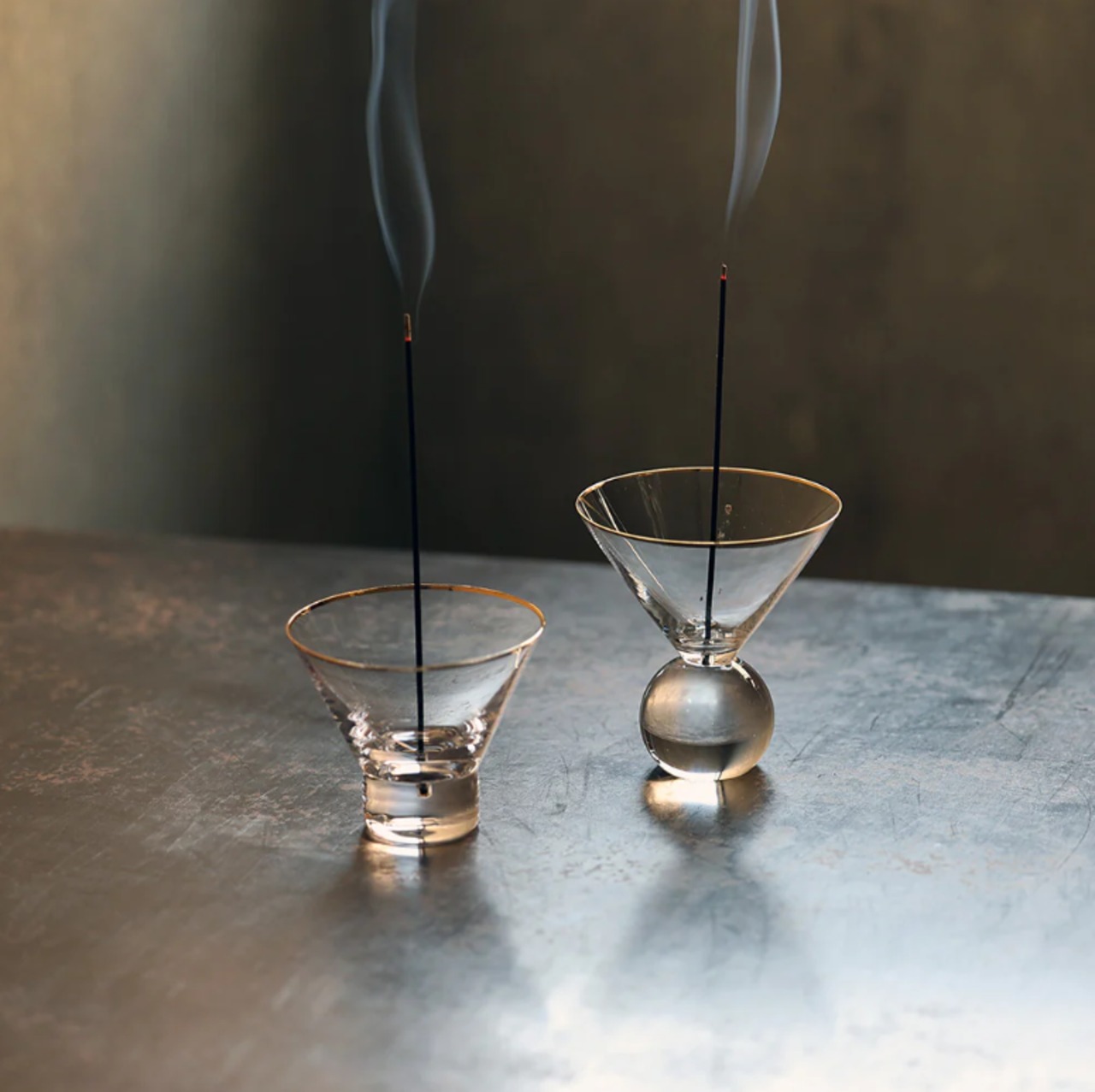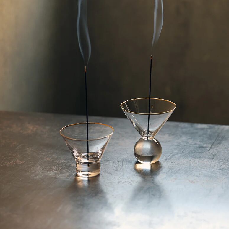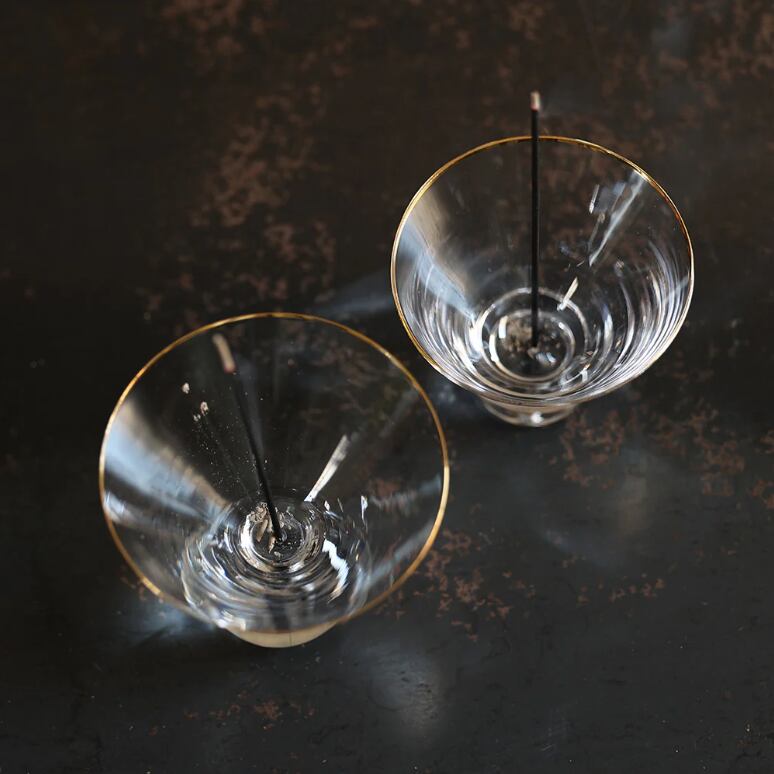 燃え尽きるまでの儚さを優雅な時間にする金縁とガラスのフォルムが美しいお香立て。