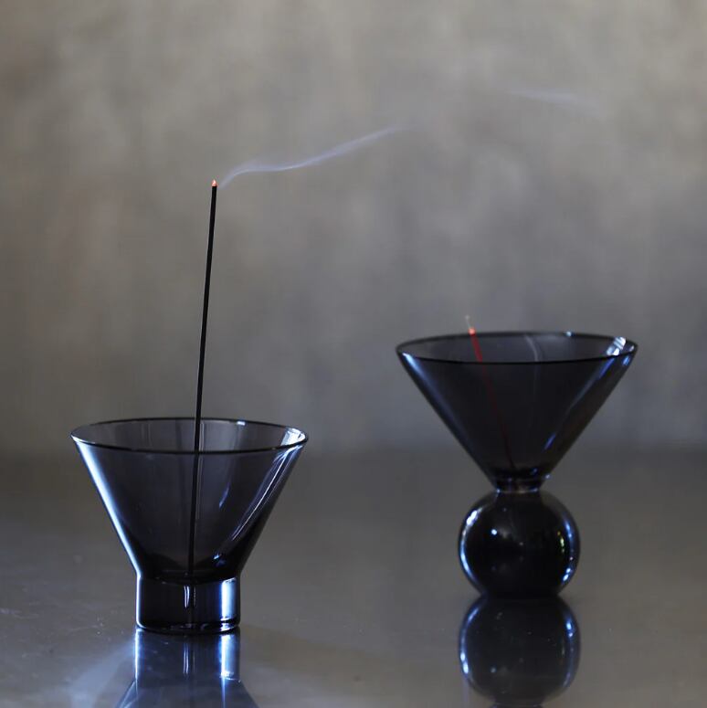 燃え尽きるまでの儚さを優雅な時間にする金縁とガラスのフォルムが美しいお香立て。