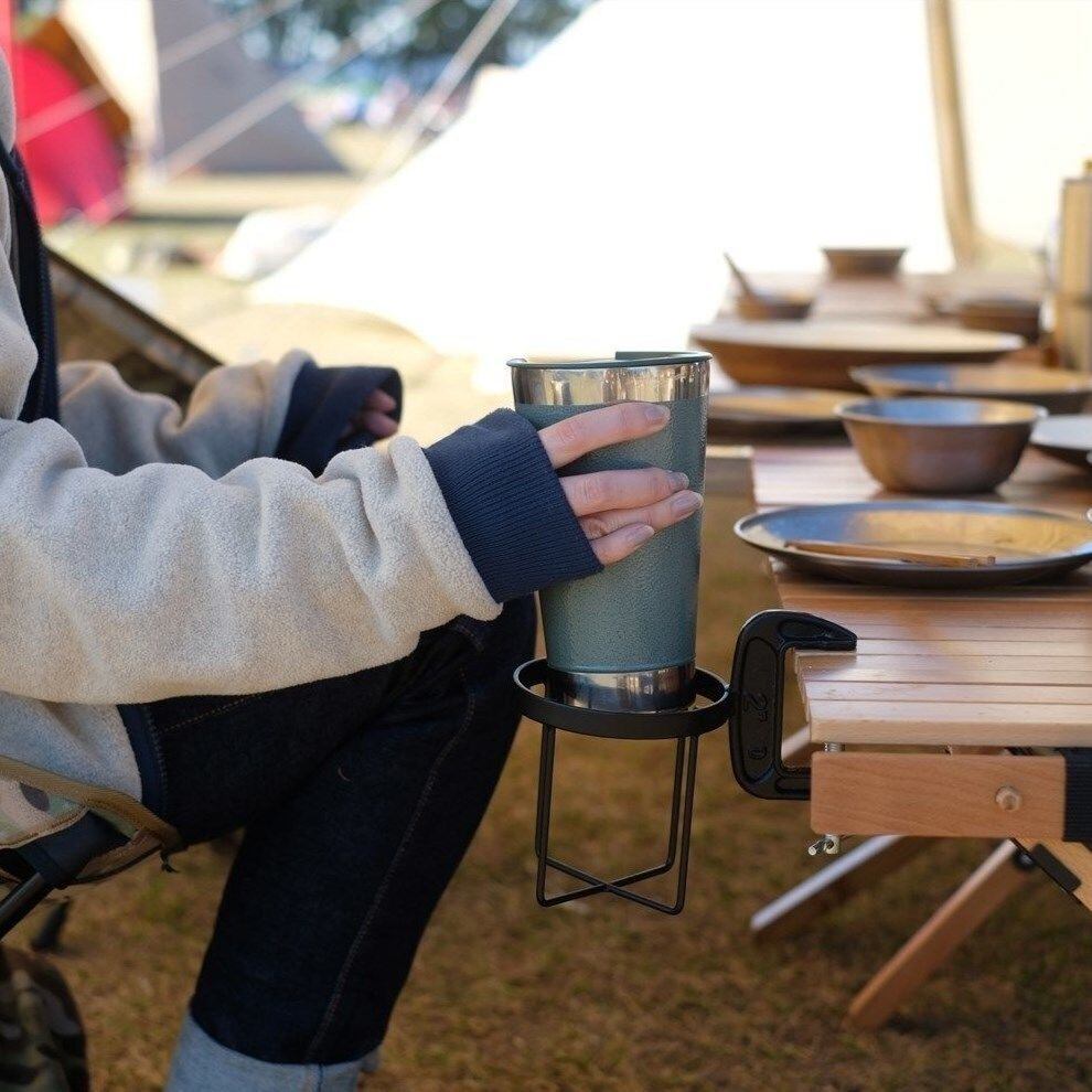 デスク周りでドリンクの転倒防止や、ベランダやキャンプなどのアウトドアでも活躍します。